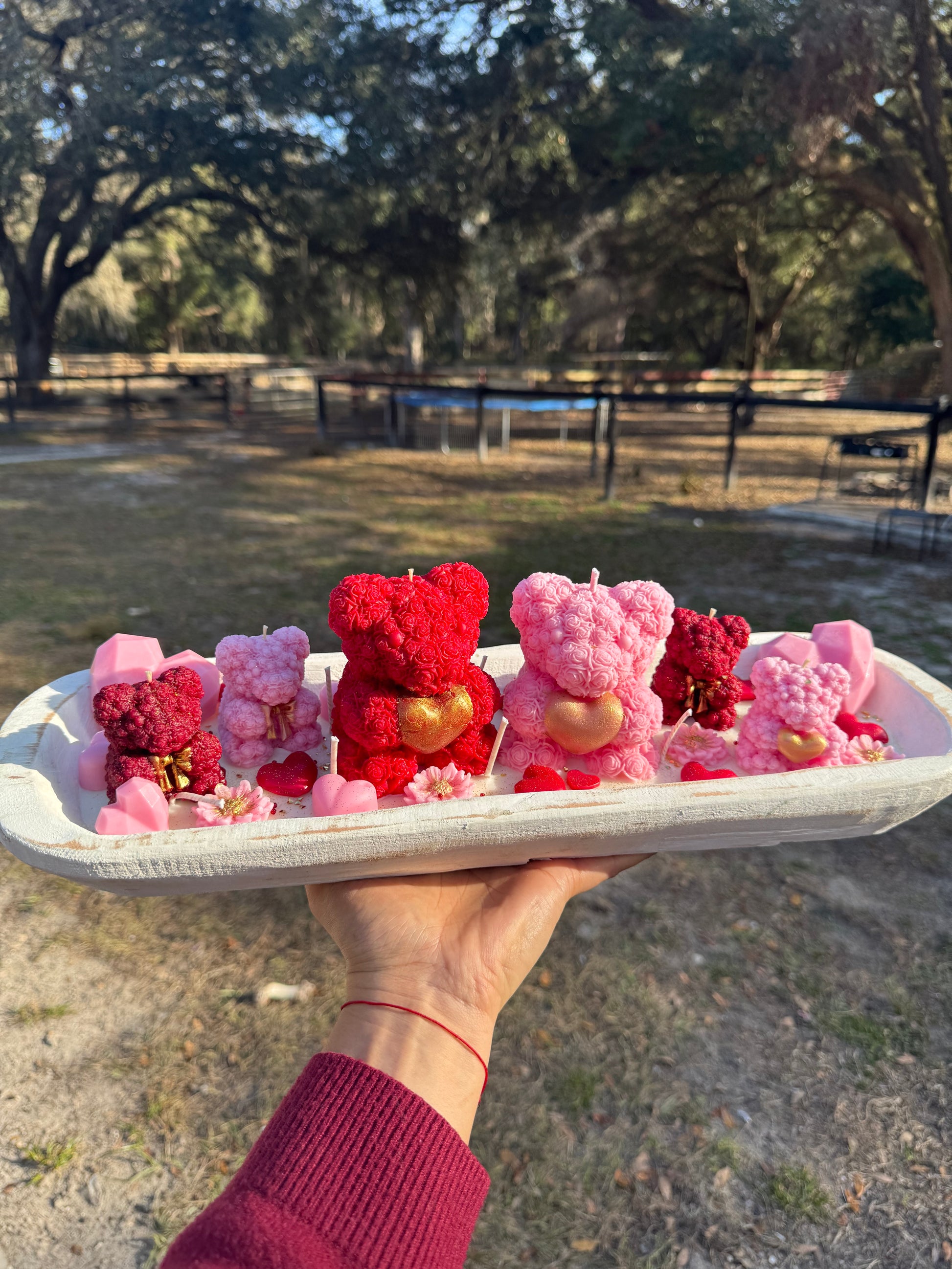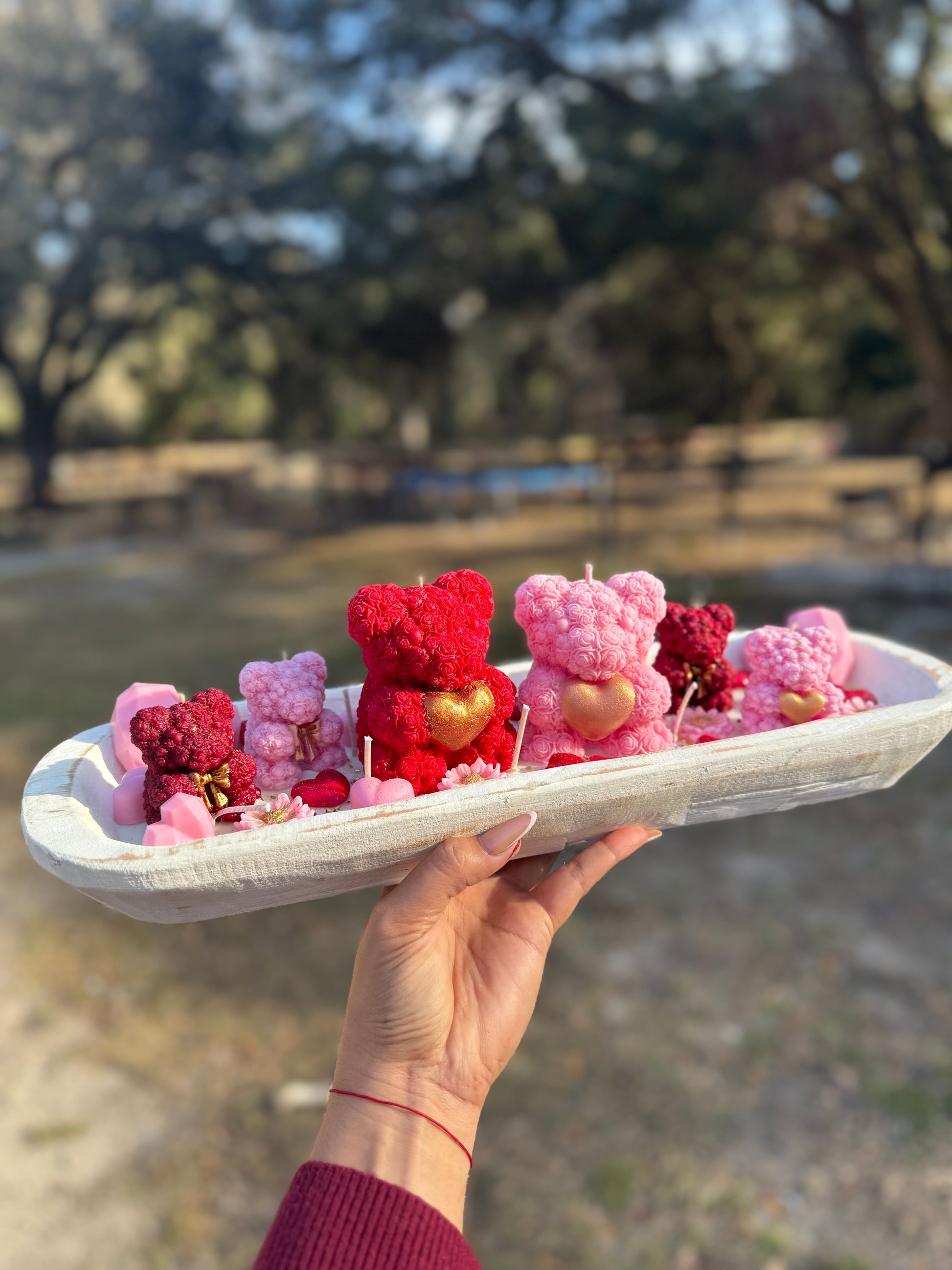 Product Disclaimer: please note that the shape of the bowl ,the depth of the wax in the candle, the color of the bears and additional decorations, the placing and selection of decorating melts may the defer due to creativity freedom, and the nature of handmade items.